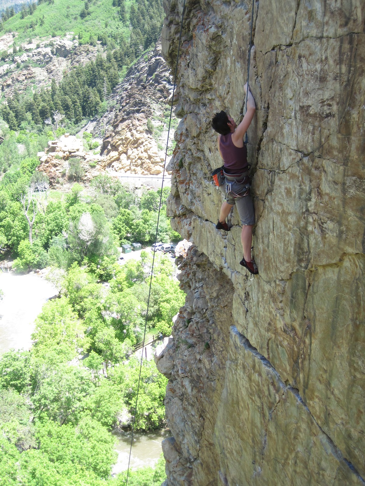 Location: Wasatch Range, 2.85 miles up Big Cottonwood Canyon. Park either on the side of road or in the Storm Mountain Picnic area. Cost: $7 day use only, if you park in the Picnic area. What to expect: Fishing at the river, clean sites with fire pit, flushing bathrooms, and a playground for the kids. Plus tons of climbing in and around! This has become one of our favorite family climbing areas. $7 is totally worth having a playground, shade and toilets for the kids, while you can climb some great routes. And it is only 25 minutes from our front stoop! Check it out on www. mountainproject.com for more details.