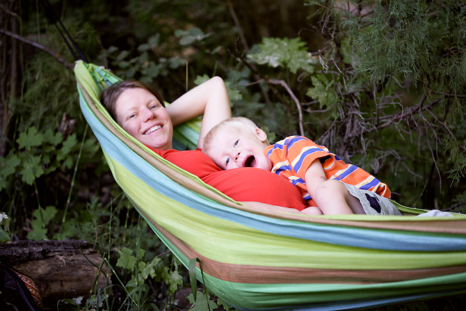 Did I want to have an active pregnancy? Most definitely! Did I go insane with all that bed rest? Completely! It was incredibly hard. I’d planned to be pregnant during the winter since winter sports are my least favorite. I’d planned to give birth a month before kayaking season was in full swing. Imagine my dismay when Mother Nature opted for a snow-free winter (i.e. year-round mountain biking weather, and a short early kayak season). Knowing the joy I was missing out on REALLY didn’t help. I truly believe that staying active during pregnancy is one of the best things you can do for you and your baby. But no matter how much some of us WANT to have an active pregnancy, it’s just not always a reality. The thing is, being outdoors is vital to my sanity, so I had to make some modifications. I thought I’d share a few tips from my coping strategy on the off chance that other outside moms encounter a similar situation. 1. Get a hammock Bed rest is actually borderline enjoyable when you HAVE to lay around outside. On second thought I take that back, “enjoyable” is not really the right word… but you get my point. Aside from having a hammock in the yard there were days when Joe would come home from work, pack up the hammock, the kids… and me, and we’d head out into the hills. I’d lay in the hammock while he explored with the kids. Just being outside made me feel infinetly more sane.