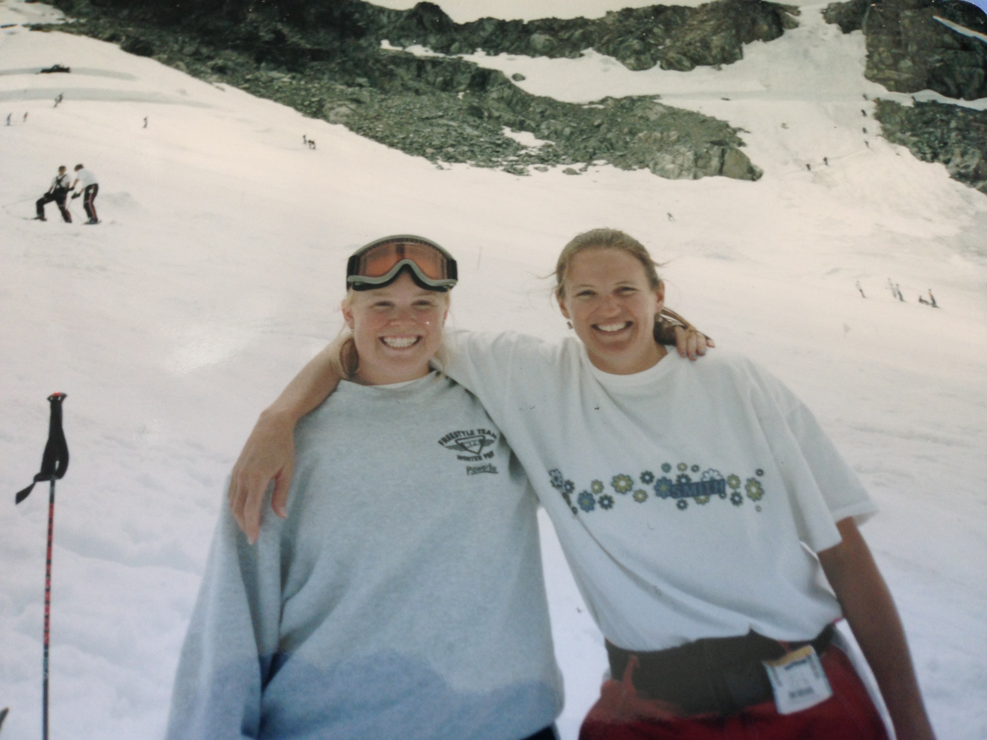 On the glacier at Whister/Blackcomb with Ann Battelle (4 time Olympian); 1999I grew up in a very outdoor/active family. We camped all summer long, windsurfed, water skied, hiked and biked. In the winter we skied. I spent a chunk of my high school and college years competing in freestyle moguls. I was immersed in this world. I loved this world. And I still do. But inside I felt unsure and restless. I was still looking for that “something” that brought meaning to all of it.