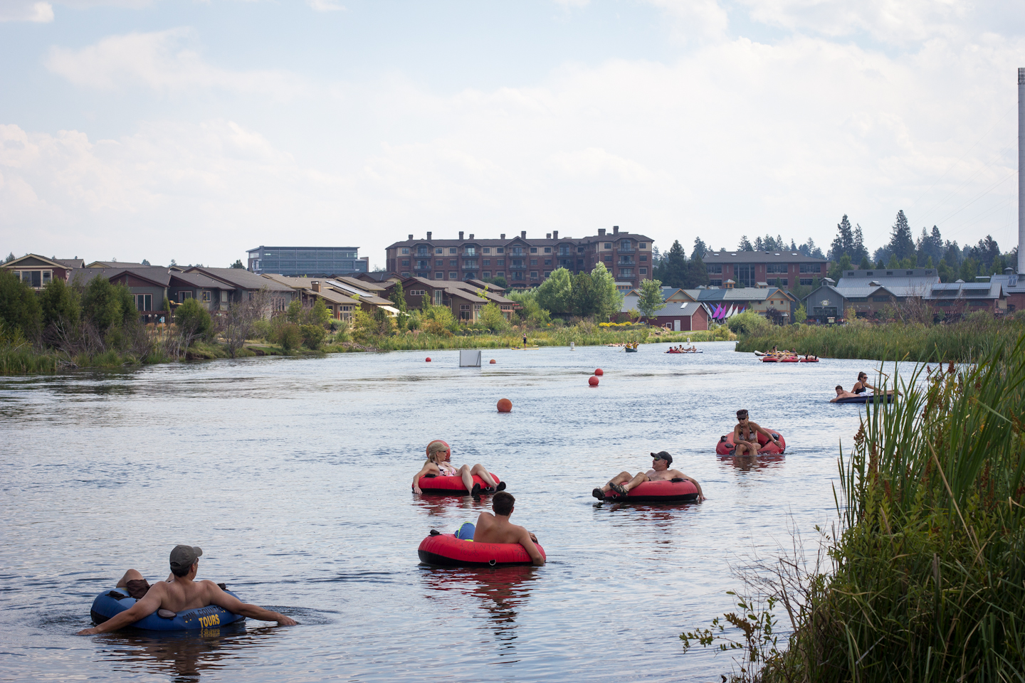 You don’t join the urban paddling crowd in Bend for solitude. But nonetheless it is an awesome experience. I rolled out our Hang Ten Board, inflated it and stowed the backpack/inflating tools, life jacket and water bottle on the front. Just make sure you know how to maneuver your board around people, bridges, and other obstacles…like these buoys that mark an upcoming spill way.