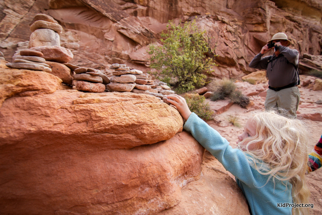 Near the start of Little Wild Horse Canyon, adding our own cairn to the mix.