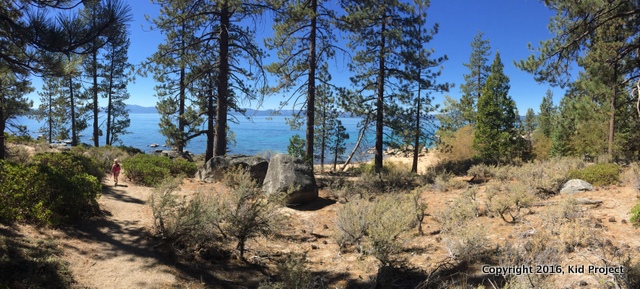 Approaching Chimney Beach, Lake TahoeWhen we arrived, at roughly 10 a.m., hardly anyone else was there! The sand was rougher than the other beaches we’d visited around Lake Tahoe but the views more than made up for it!