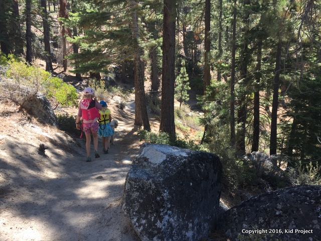 Hiking down to Chimney BeachWe brought our Helinox chairs, a sun shade, life jackets, towels and a bunch of food.