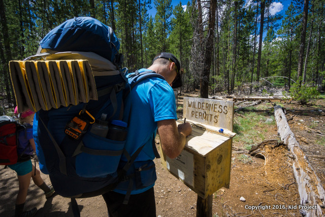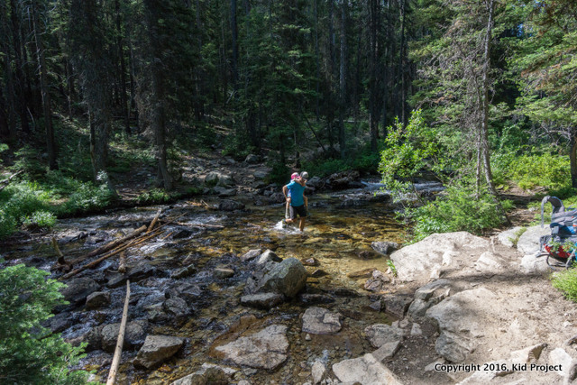 Wilderness Permits are required but free. You simply fill out the form and hang it from your pack. Only one form needed per group.At the next junction we enjoyed quicker miles on relatively flat ground as we headed toward Toxaway Lake. Around mile 3 we ran into our first river crossing and Kai was SO happy for some water and a cool off.