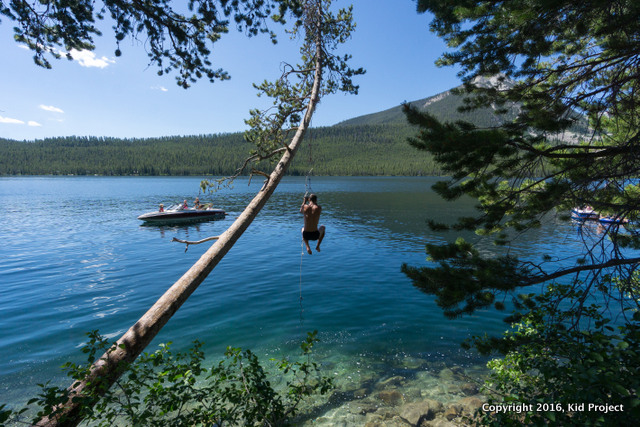 Pettit Lake rope swing, .25 miles from the trailhead.