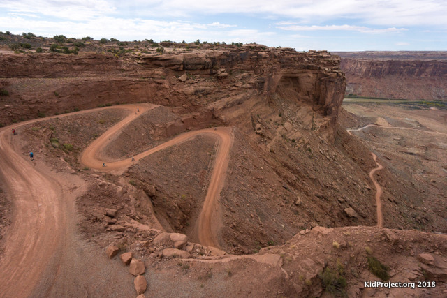 Road to Mineral Bottom, UtahLooking down, I was so nervous about sending 7 kids down it, with nothing between them and the cliff side except their little hands and their brakes. But all the kids rocked it. I wrote: