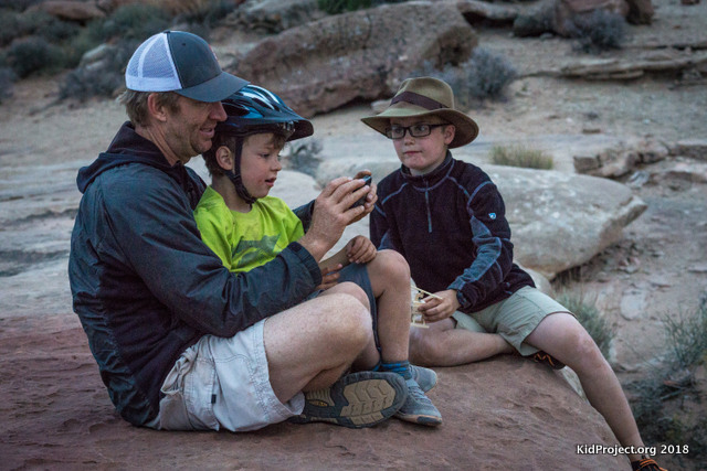Day 2 Victory! Two of the young kiddos learned to bike! Yes, they came along not having mastered pedal bikes, but left able to say, "I learned to bike on the White Rim Trail!" Epic.We arrived right at dusk, leaving the cooking and camp set up to happen in the dark.