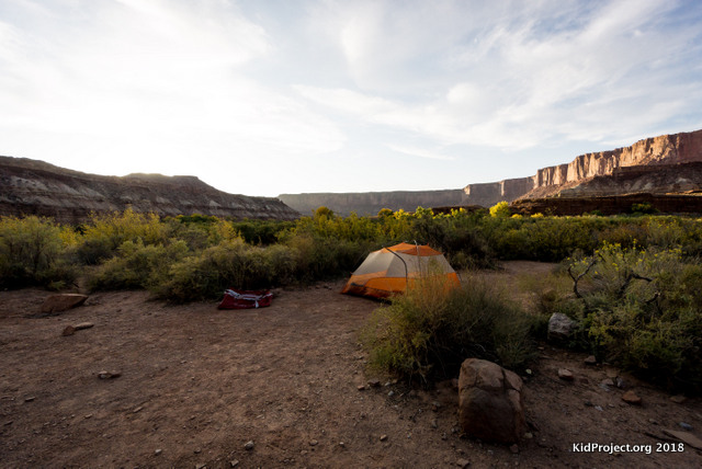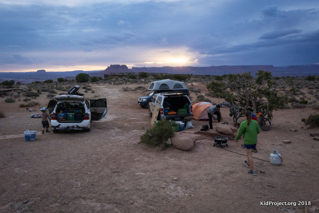 Murphy's Hogback camping, CanyonlandsAs far as the campsites we stayed at: Hardscrabble: These sites are located down by the river and thus have some trees and shade. The surface was generally sandy and great for setting up tents. Murphy’s Hogback: Perched up high on the plateau, these sites have great 360 degree views of the Canyonlands. Rocks for the kids to climb and play around were everywhere, as well as a few trees that could provide a tiny bit of shade. There is little shelter from wind and storms, except for a few boulders. The ground was rough and rocky, making tents more difficult to secure. Airport: These sites are huge and wide open, perfect for large groups. There is a fun ridge-line nearby if you have time for a short hike.