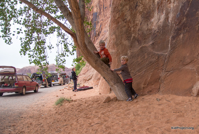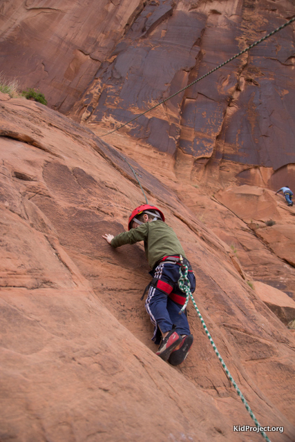 If you are not familiar with Wall Street / Potash Rd in Moab, UT just know that you cannot find routes with a shorter approach. You drive up, you toss out your gear, you jump on the rock. Easy. Today I want to highlight one area for kids - The Schoolroom Slabs