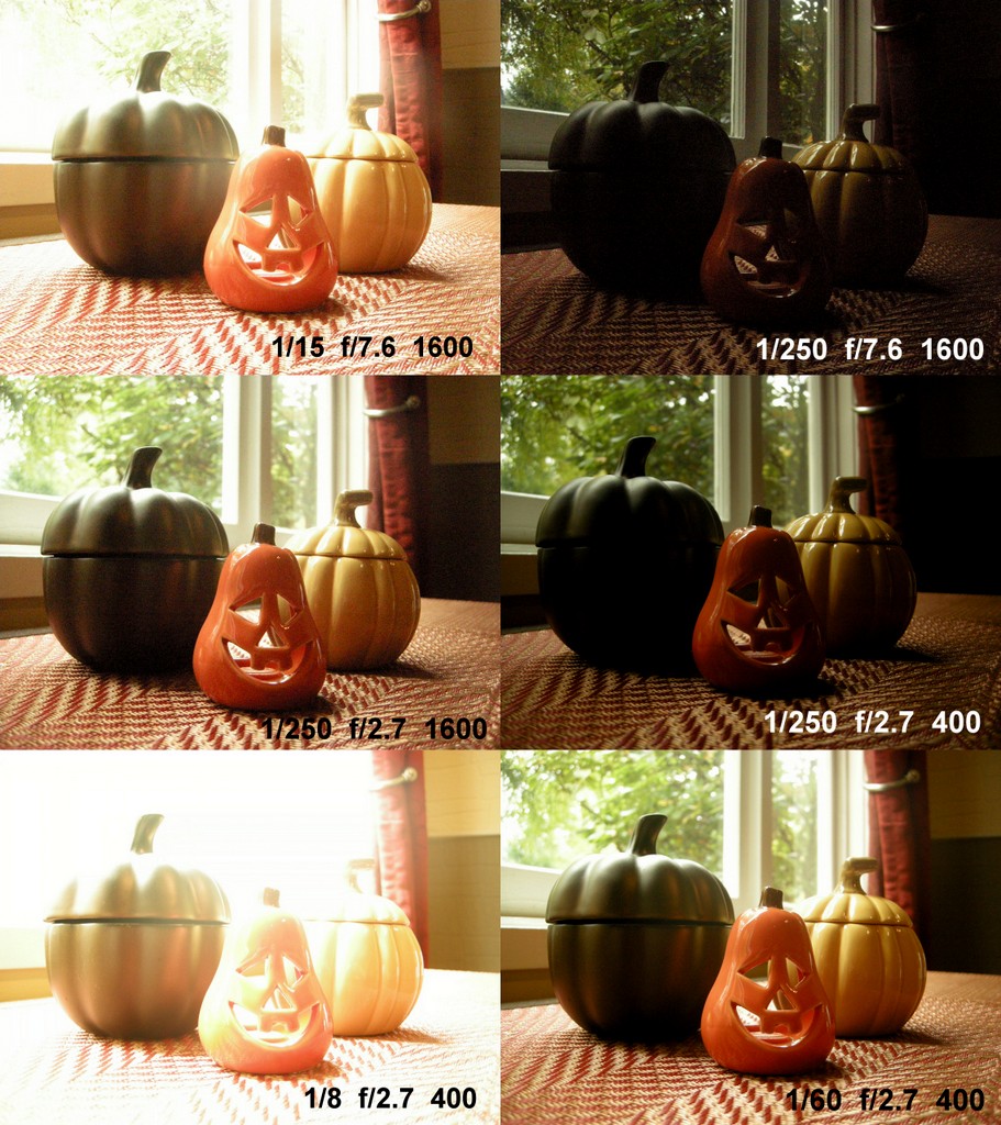 2. Take Photos Sounds obvious, right? It is, however, the single most effective way to take more photos you love. I guess this is my way of saying practice makes perfect (or “practice makes progress”, as I prefer). I have learned this truth over the course of my life, but it has been since starting my photo blog, daily perspective, a few years ago, that I truly learned how beneficial it is to just go do something. (p.s. I am not endorsed by Nike) Honestly, I can’t say that I love all of the pictures I take, but I know that without getting out and taking more photos, I would not have 90% of the shots that I do love. So get out there. Challenge yourself to break out the camera more, pick a simple object and take ten different photos, start a photo blog(!?) or just go for a walk with your camera every now and then. It is up to you to take more photos. 3. Get Technical Exposure Gaining an understanding of exposure (enter “S”, “A” and “ISO”) is like getting into the mind of a photo and controlling it. The relationship between Shutter Speed, Aperture and ISO allows you to take the conditions you are given and create the photo exposure you desire. Shutter Speed refers to the amount of time a camera shutter stays open. It is measured in seconds, ranging from small fractions of a second (1/60) to several seconds (4) and even minutes in certain conditions. Aperture determines the amount of light that passes through the lens. It is measured by the size of the opening in the lens and referred to by an f number or f-stop. This all gets a little confusing and mathy and the numbers are weird, but the f number basically indicates the amount of light that is “stopped” from entering the lens. A smaller number (f/2.8) means a larger amount of light passes through where a larger f-stop (f/16) indicates a smaller aperture. ISO measures the cameras (or films) sensitivity to light. It is represented by doubling numbers normally ranging from 100 to 3200. The important thing to know is that the higher the ISO number is, the more sensitive your camera (or film) is to light. So, how does all this technical stuff translate to photos? Below is a six step process I took in finding a good exposure. The composition, focus settings and lighting are constant, but I change one exposure setting with each new picture. See if you can make sense of the changes and then read below for an explanation.