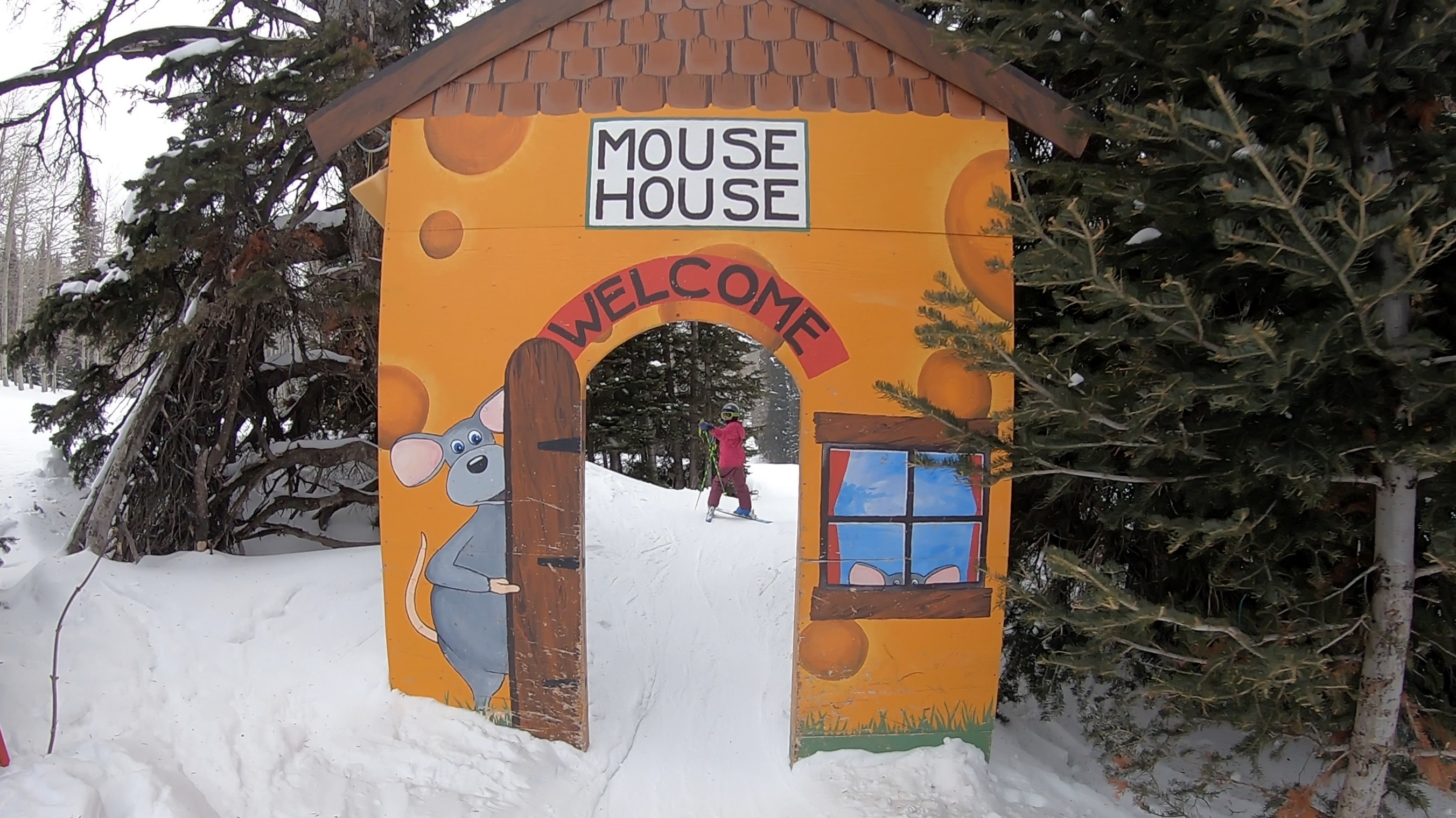 Each of the children receive their own “kid’s area map” so they can find all the amazing runs, trails through the trees, terrain parks, jumps and even a mouse house. We felt comfortable with the terrain and lay out of the mountains so we let our kids pair off with a friend and explore for a bit on their own!